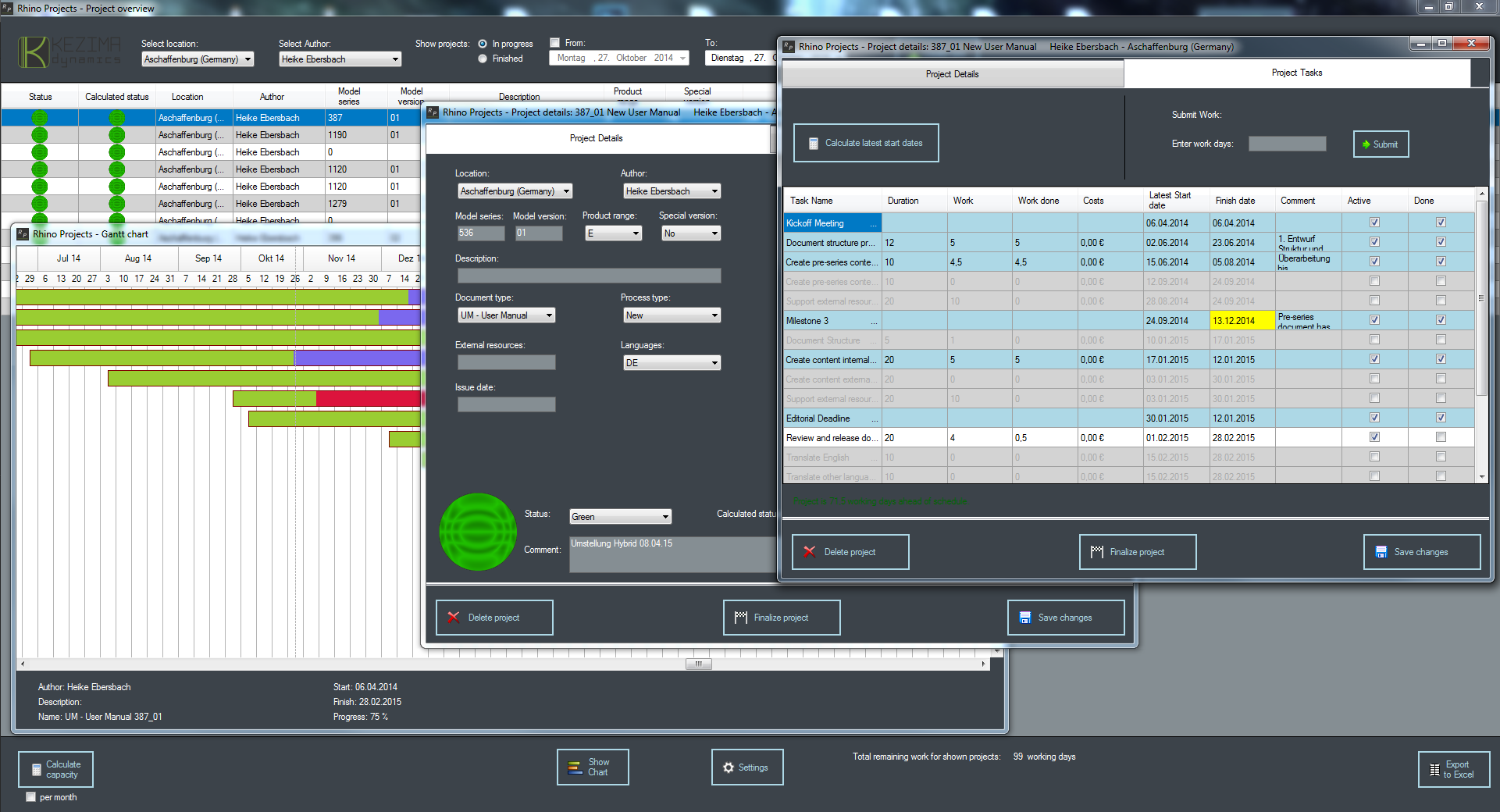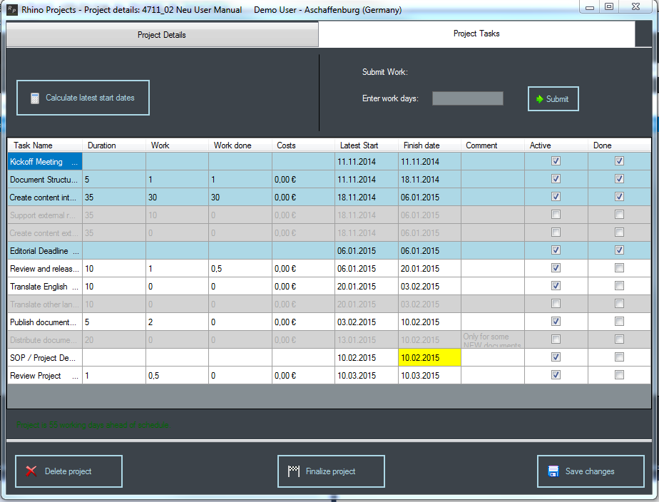 Projektmanagement-Funktionen von Rhino Projects: