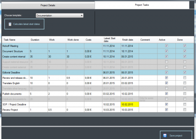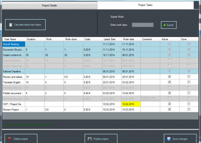 - Projektplanung: Planen, Terminieren und Anlegen neuer Projekte, Arbeitspakete und Meilensteine